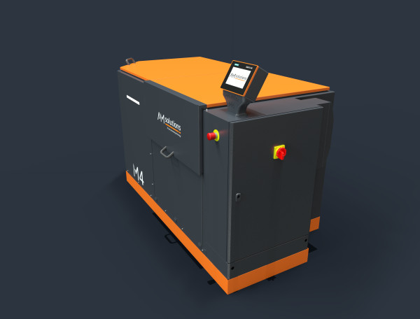 Yes, it’s designed for it. The M4 features a special machine housing for noise protection, making it suitable for use alongside other equipment. Its mobile nature (easily moved with a pallet truck) and small footprint allow for flexible placement without disrupting workflow.