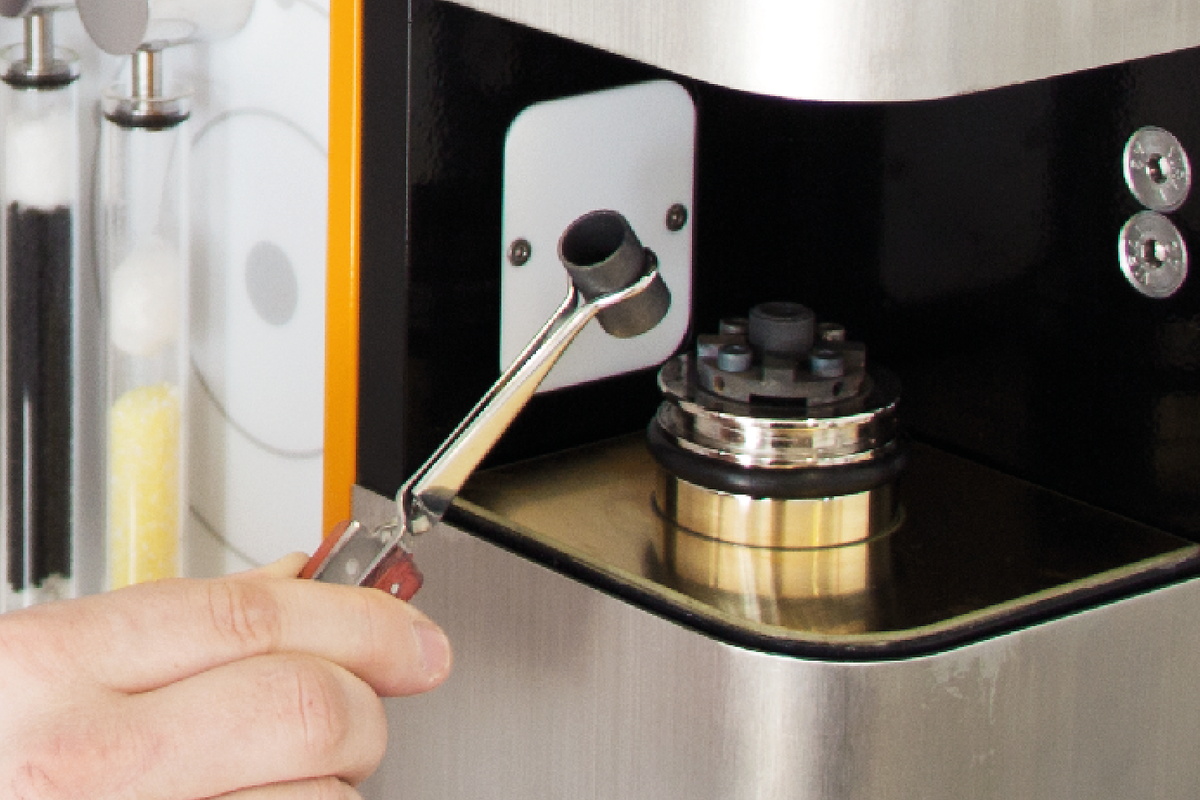 The measuring principle of the ELEMENTRAC OH-p 2 elemental analyzer allows for a wide measuring range. To analyze the sample, it is weighed and placed on the sample port. Flushing with carrier gas prevents atmospheric gas (oxygen) from getting into the furnace.