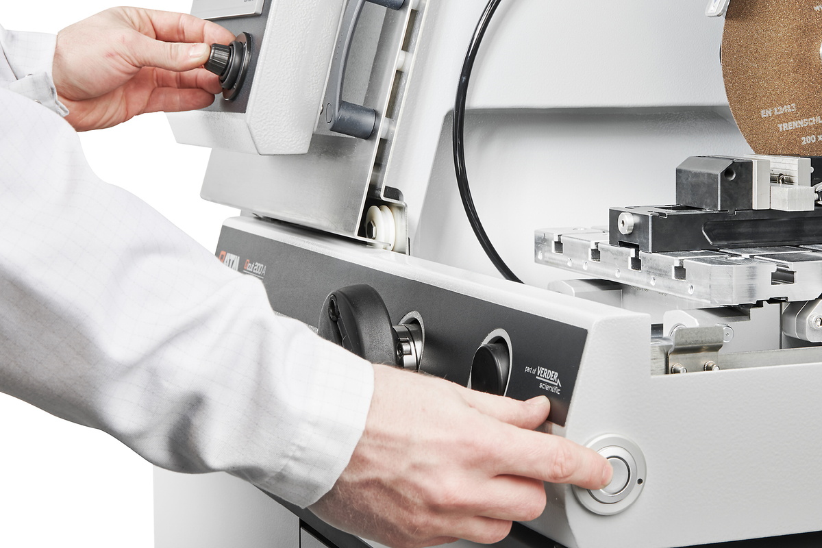 The Qcut 200 A is a flexible precision cut-off machine which is used with cut-off wheels up